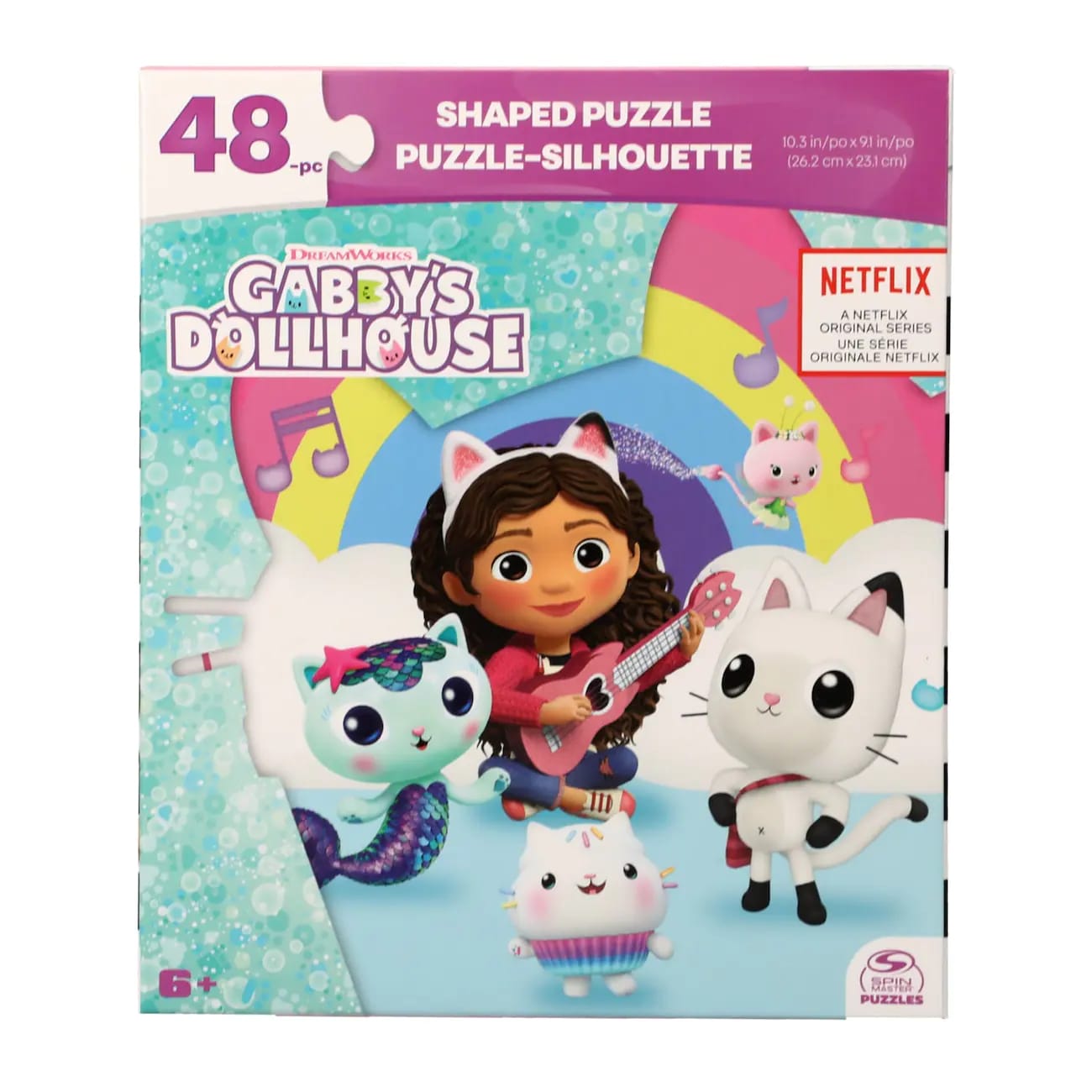 Divirta-se com esse Quebra Cabeça de 48 peças original da Casa Mágica da Gabby! Com seu contorno em formato de arco íris, você se diverte montando uma linda imagem da Gabby e seu amigos gatásticos. Quebra Cabeça montado: 26,2 x 23,1 centímetros.